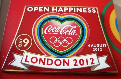 Title (ebay affiliate link): London 2012 olympic PIN coca cola day 9 heart open happiness