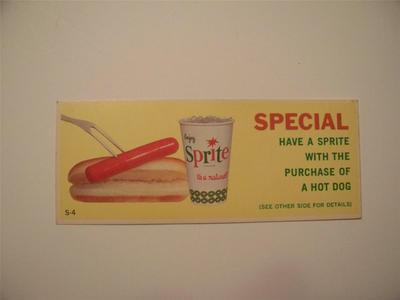 Vintage Coca Cola 1960's coupon "Special Sprite & Hot Dog"