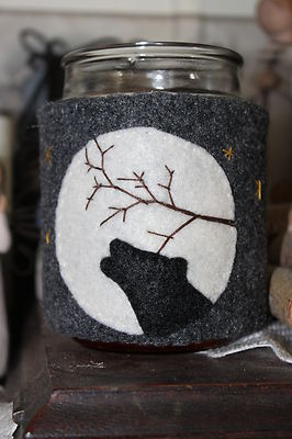Primitive / Country Howling Wolf / Moon Penny Rug Candle Wrap
