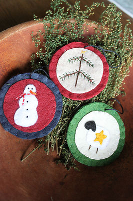 3 Primitive Penny Rug Ornie/Bowl Filler (sheep, tree, & snowman)