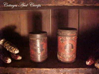 Title (ebay affiliate link): PRIMITIVE ANTIQUE BAKING POWDER TINS EARLY ROYAL & CALUMET PAPER LABELS aafa