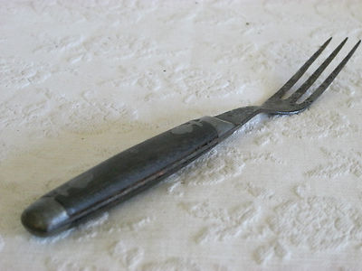 Title (ebay affiliate link): WOOD HANDLE 3 TINE FORK Acorn pewter trim late 1800's some rust all original