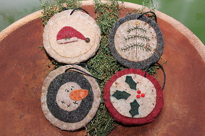 Title (ebay affiliate link): 4 Primitive Penny Rug Ornie/Bowl Filler (holy,santa hat,snowman head,&tree)