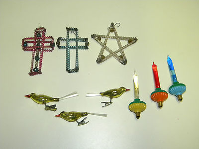 Title (ebay affiliate link): Glass Bird Ornaments.. Beaded Star ..Beaded Cross.. Bubble Lights.. Assortment