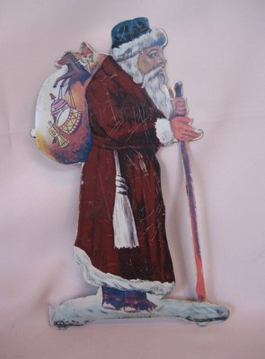 Title (ebay affiliate link): Antique Enamel TOLE Metal Santa with Bag of Toys Doll Clown Drum c.1920s