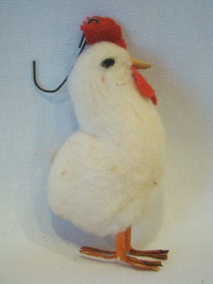Title (ebay affiliate link): Vintage Christmas COTTON BATTING Rooster Feather Tree Ornament Spun Cotton