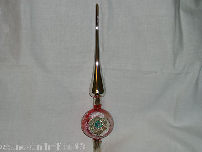 OLD REFLECTOR INDENT ORNAMENT PINK SILVER MICA CHRISTMAS TREE TOPPER BLOWN GLASS