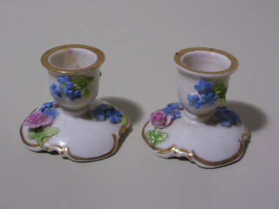 Antique Von Schierholz Porcelain Floral Candle Sticks 1.5" Tall