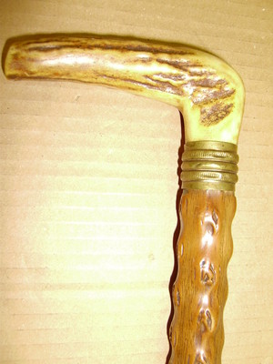 Title (ebay affiliate link): 1 ANTIQUE GERMAN BLACK FOREST ROSEWOOD KNOTSTICK WITH RED DEER ANTLERS GRIP