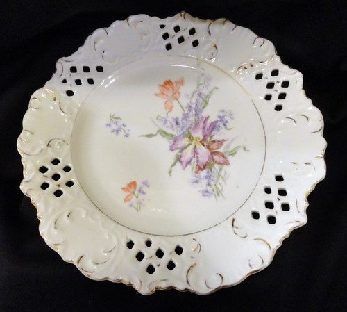 Antique Reticulated Pierced Porcelain Plate, Flowers