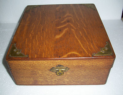 ANTIQUE/VINTAGE OAK WOODEN BOX W/BRASS ACCENTS FOR DOCUMENTS, etc