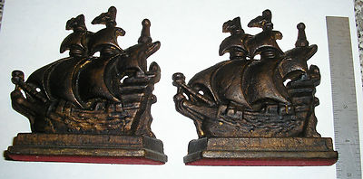 Antique Heavy Cast Iron Clipper Ship Sail Boat Bookends Book Ends