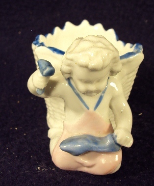 Porcelain spill vase toothpick holder match safe cobbler putti