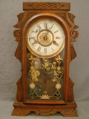 Title (ebay affiliate link): 19thC Antique SHANNON 1 Day NEW HAVEN Striking Alarm WALNUT Wood SHELF CLOCK