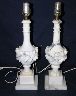 BEAUTIFUL ANTIQUE PAIR OF MARBLE TABLE LAMPS