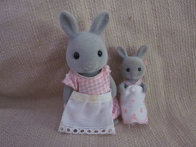 Title (ebay affiliate link): vintage TOMY Sylvanian Families Babblebrook Gray Rabbit Mother and Baby