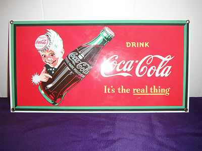 Title (ebay affiliate link): Coca Cola Porcelain Sprite Boy "It's the Real Thing" Sign