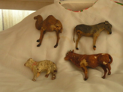 4 Vintage Christmas Putz Animals in need of a Vet!!