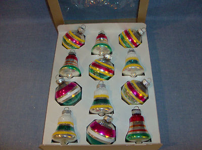 Title (ebay affiliate link): (12) VinTage Shiny Brite Mica Stripe Glass Christmas Ornaments 2" & Box EUC