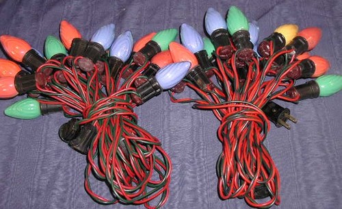 Title (ebay affiliate link): 2 Strings Vintage NOMA Christmas Lights Swirl Bulbs