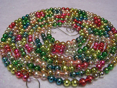 9'+ Vtg Multi Color Christmas Mercury Glass Bead Feather Tree Garland (B)