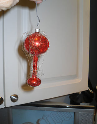 Title (ebay affiliate link): ANTIQUE MERCURY GLASS RED CHRISTMAS ORNAMENT W/WIRE SURROUND-PREMIER USA