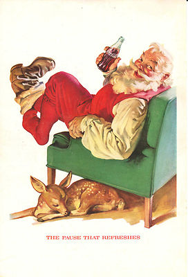 Title (ebay affiliate link): VINTAGE COCA COLA AD, SANTA CLAUS, 1940'S OR 50'S, "THE PAUSE THAT REFRESHES