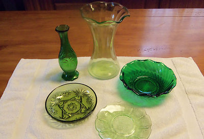 Title (ebay affiliate link): Lot Depression Glass Uranium Green Scallop Starburst Bud Vase Dip Bowl Plate