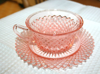 Title (ebay affiliate link): Pink Cup & Saucer. Miss America Depression Glass. Hocking Glass Co. Fourth Set