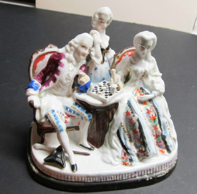 Antique Staffordshire fairing trinket box & inkwell chess game NR