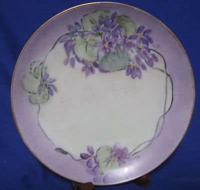 Hand Painted Plate Japan Hazel B. McMeekin Lavender Purple Flowers Green Antique