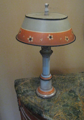Vintage Hand Painted TOLEWARE 22" Table LAMP 1960's America FLORAL Border