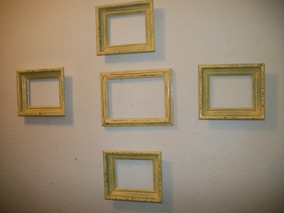 SET OF FIVE YELLOW ANTIQUE WOODEN FRAMES