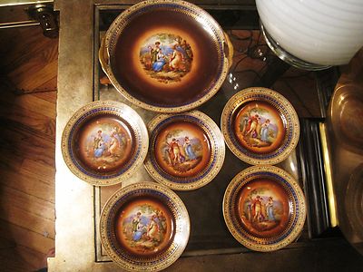 Title (ebay affiliate link): Antique Angelica Kauffman Gold Plate Charger Czech Austria Porcelain Cobalt Blue