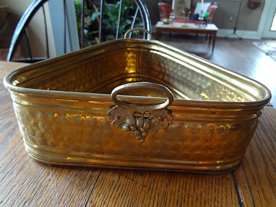 Title (ebay affiliate link): Vintage Hand Hammered Brass Planter-2 Handles Grapes Triangular Shape