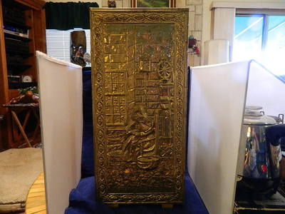 VINTAGE REPOSED BRASS AND WOOD UMBRELLA / CANE STAND