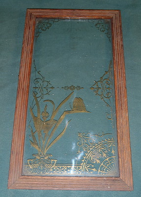 Antique Oak Kitchen Clock Door w/ gold butterfly pattern glass