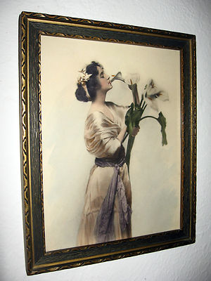 Title (ebay affiliate link): LOVELY Vintage Art NOUVEAU Framed Print !!! Pretty Lady/Calla Lilies!!!
