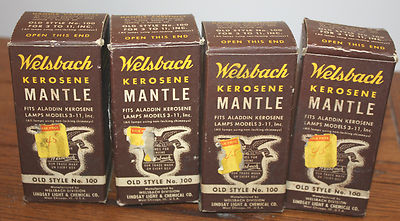 4 Vintage Welsbach Kerosene Mantle fits Aladdin Lamps Model 3-11 Old style 100