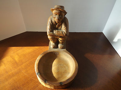 vintage wood carving old man sitting
