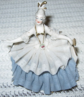 Seated Meissen Lady Holding Fan Delicate Lace Figurine