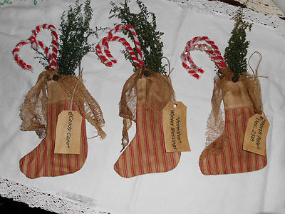 Title (ebay affiliate link): Primitive~Handmade~Grungy Red Ticking Stockings Gathering~Ornie~Bowl Fillers~