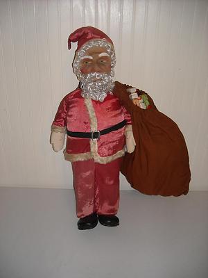 Title (ebay affiliate link): Vintage Handmade Primitive Christmas Folk Art Santa Doll With Gift Bag