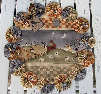 Salt Box House Sheep Hang Tag Rusty Bell Cotton Fabric Yo Yo Candle Mat Doily