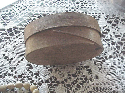 ANTIQUE WOOD PANTRY TINY BOX- FINGERS- SHAKER? OVAL 4"