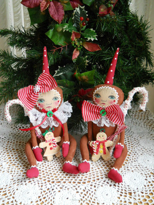 Primitive Folk Art Christmas Ginger Bread Set "Lollipop Kids"