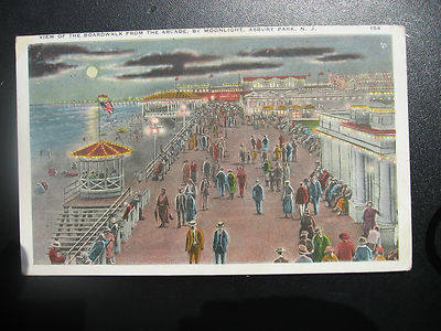 Title (ebay affiliate link): Postcard Asbury Park "View of the Boardwalk from the Arcade by Moonlight" 1924