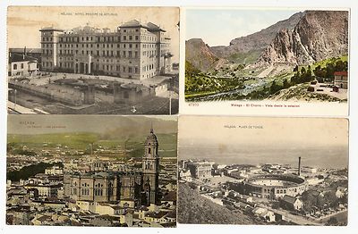 SPAIN lot 4 old postcards views MALAGA. Unused