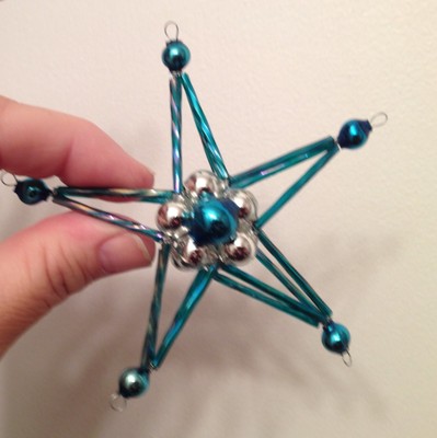 Title (ebay affiliate link): vintage mercury glass beaded STAR Christmas Ornament: PEACOCK/AQUA/SILVER