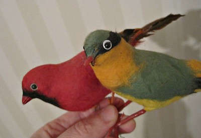 Title (ebay affiliate link): Vintage Spun Cotton Birds Christmas ornament with real feathers set of 3